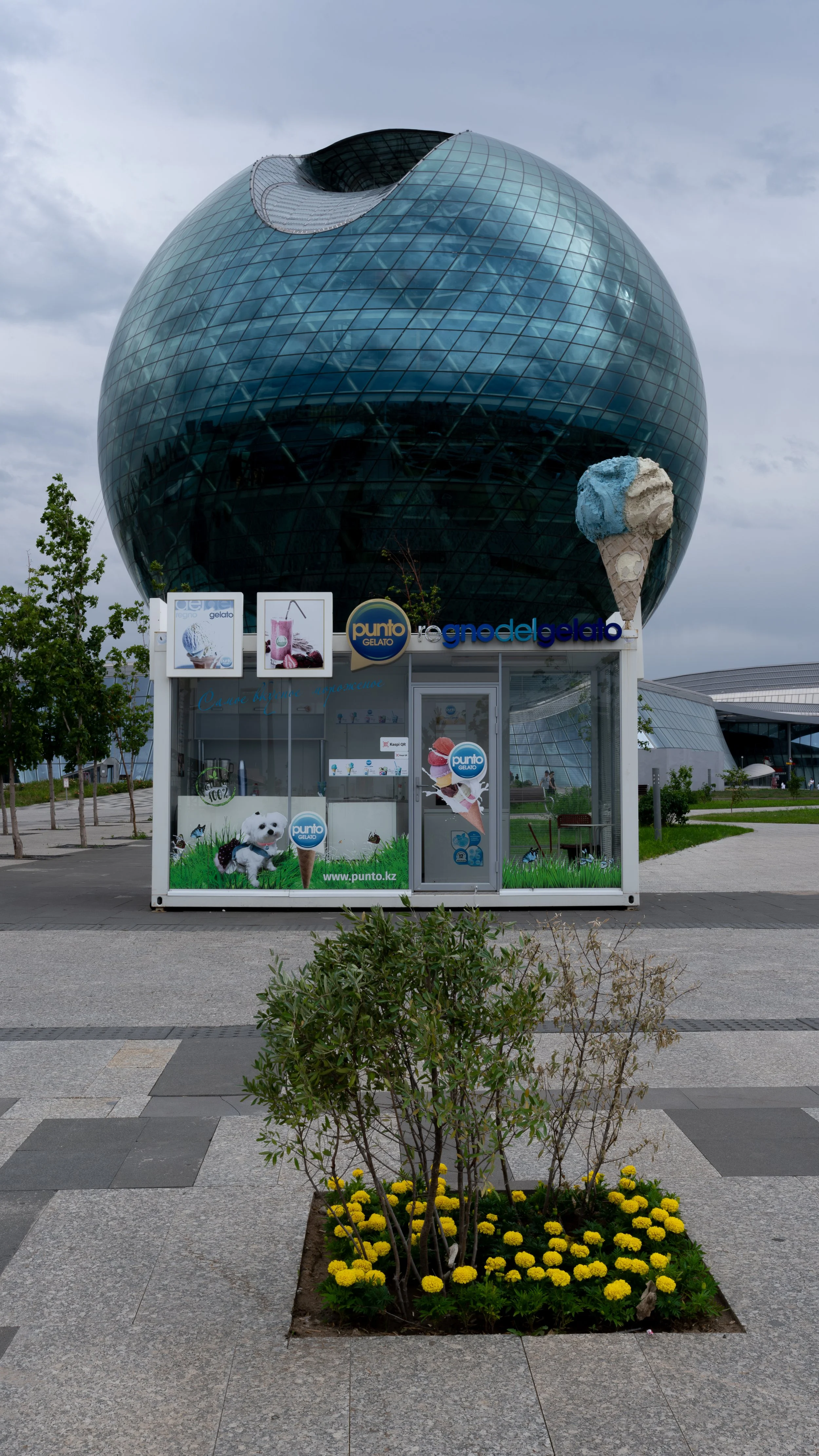 I began to feel a sense of loneliness after my seventh day in Astana. I never made any new friends like in Balkhash and started to feel like an NPC wandering around a city filled with magnificent architecture. I was looking in the wrong place the whole time. The riverwalk near Astana Central Park is the city's most active and soul-filled part. I found people walking around and enjoying themselves with friends and family. The mood finally felt fast-paced and alive. Restaurants, music, and arcade games entertained the evening crowd. I wish I had taken better photographs of the riverwalk. Part of this journey across the country challenged my confidence in taking photos of crowds or just individual portraits. I admit I failed at achieving this kind of photography but I cannot wait to challenge myself again in the future.