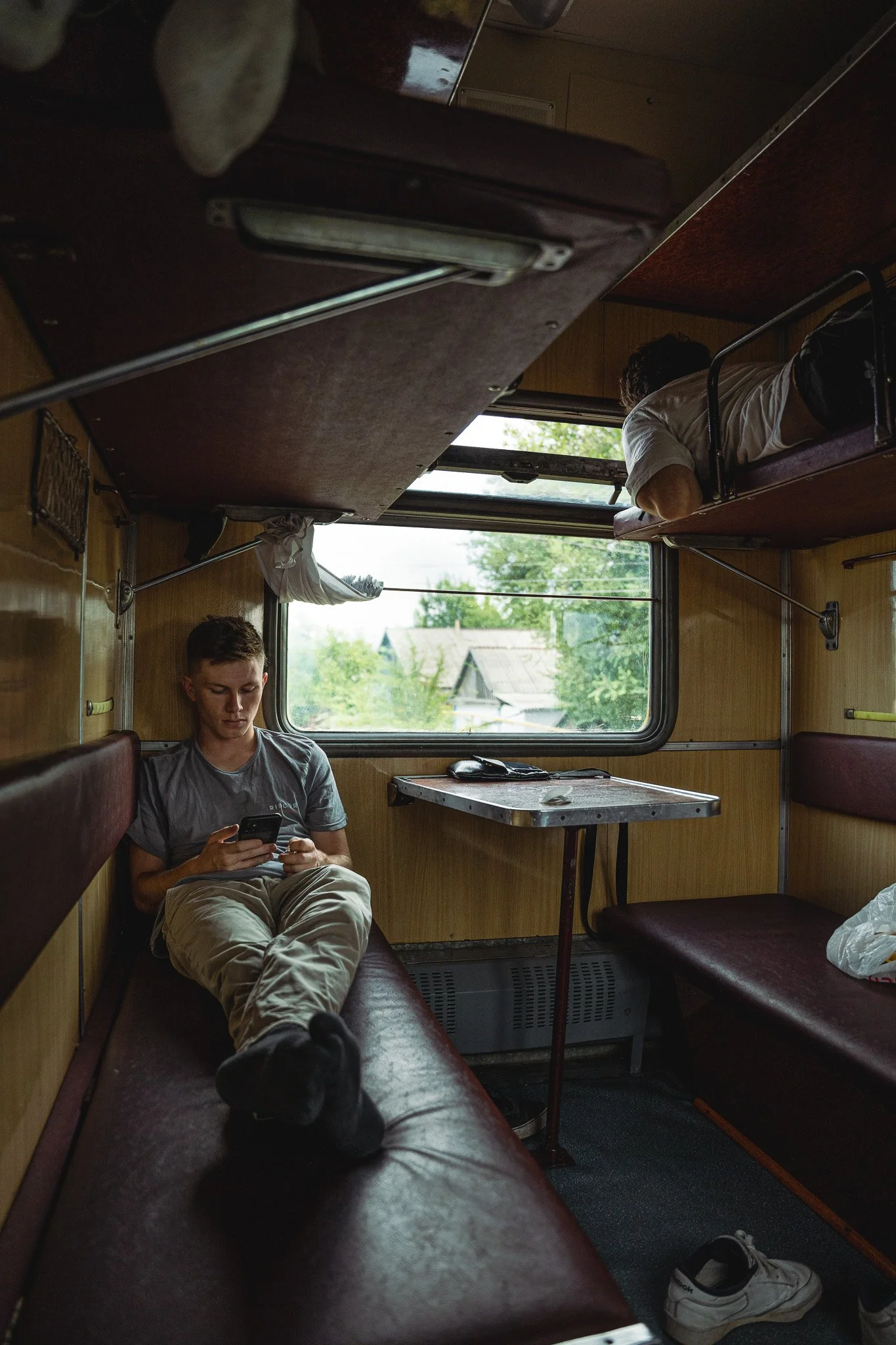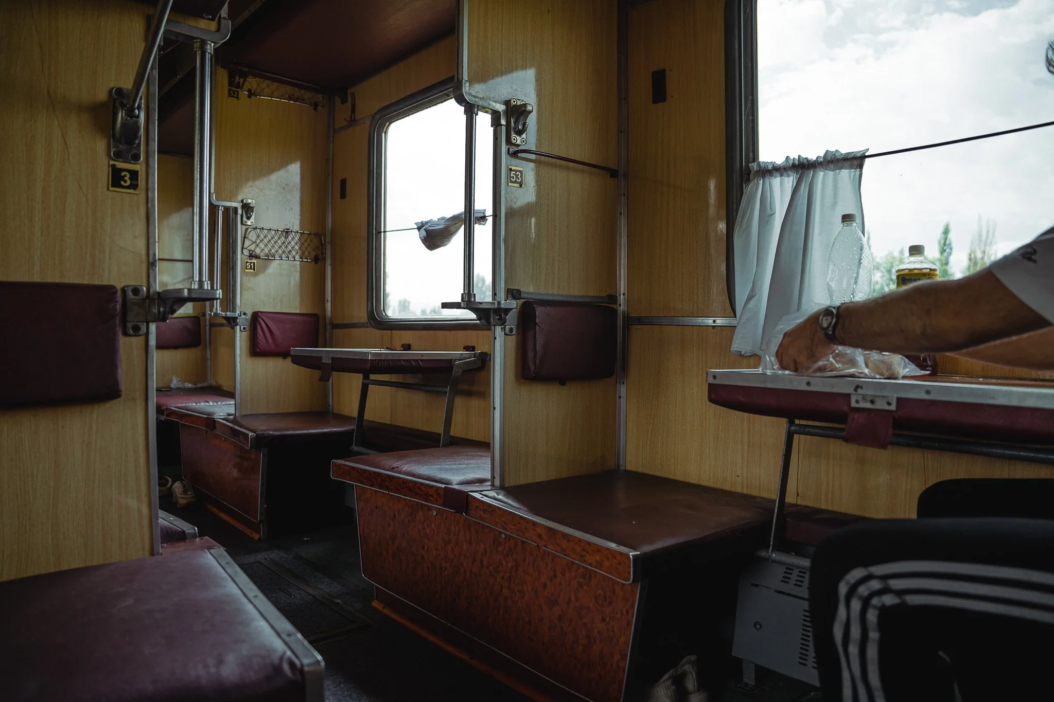A few of my friends had agreed to join me for the adventure the night before. 6:30am rolled around and no body was actually awake but myself and my friend John. I went to the store to fill up on water and snacks for the ride while John made sure everyone was getting up. Sure enough 7:15am rolled around and everyone was quick to pack their bags knowing we had fifteen minutes to board. A race against time ensued with the nearest train station being a twenty minute walk from the dormitory. We started running down the street passing by the early birds who were probably questioning our motives at this time of day. A few elderly gentlemen took part in our race shouting,“Begi bystreye!” in Russian. “Run faster!” Sure enough the 7:30am departure time was true. I could see the green passenger cabins through the thin patch of trees separating the road from the tracks. It was laughable hearing the locomotive and thinking it might depart without us. Out of breathe and in need of water, we managed to purchase our tickets at the booth with just five minutes to spare. I don’t even think Francis Bourgeois, the famous train enthusiast on social media would have been as motivated as I was to make it on board. Yet, thats exactly who I felt like once I was on the train.