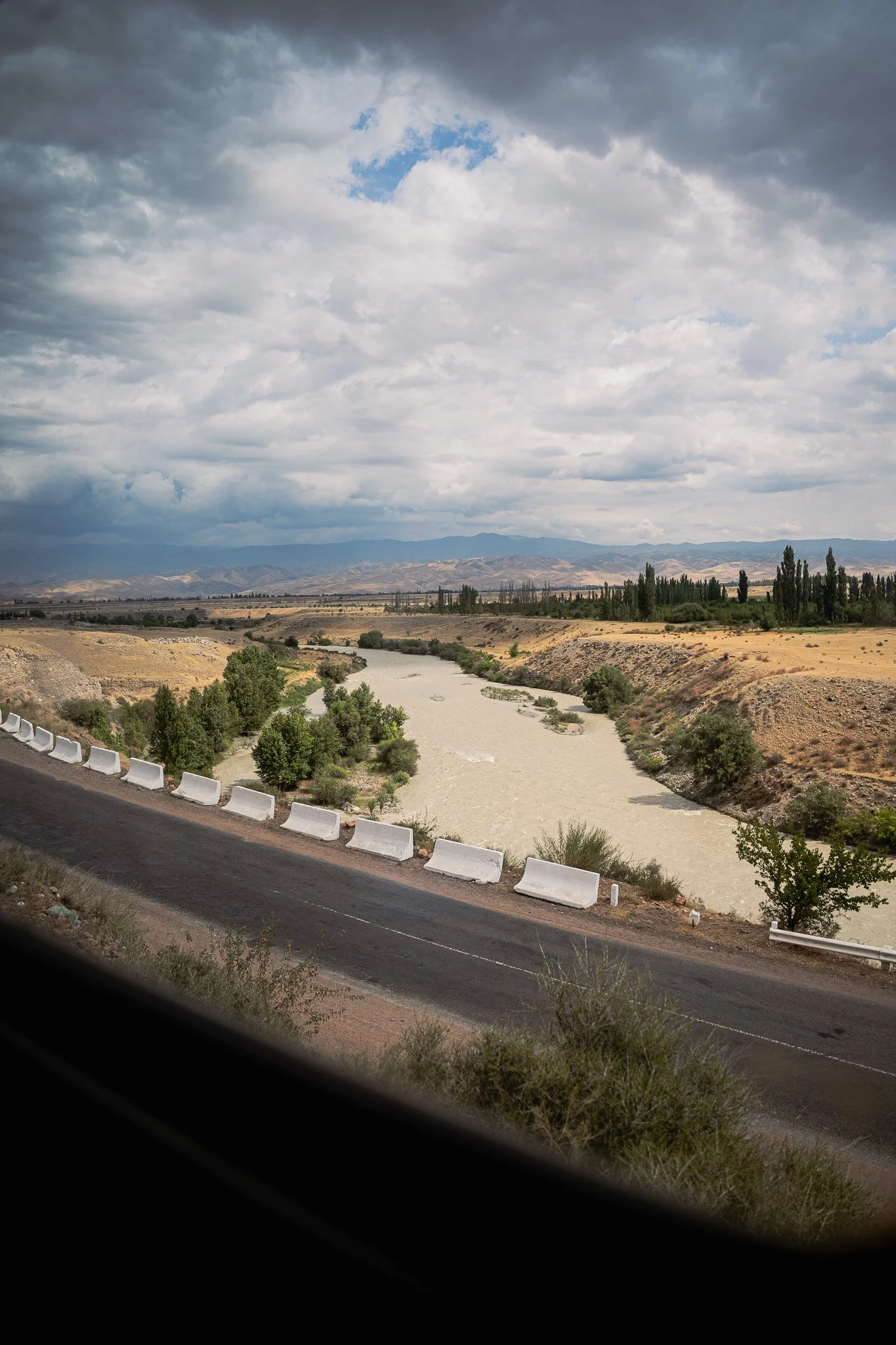 There was only one small problem. Two men were standing at the entrance of the station to tell us the bad news. The departing train to Bishkek was closed for three days due to a massive mudslide in the Boom Gorge. The tracks were completely covered. We hopped back into the Lada and drove to the bus station only to receive news that the highway was shutdown for at least four hours. Thousands of people were looking for a way back to Bishkek. Our only option was to wait it out in the restaurants but most places were running out of food with the sudden influx of tourists. Luckily a small classroom sized restaurant away from most of the commotion was still serving. Our friends even gave us a few apricots from their garden to eat before our plates of Laghman were served. Two or so hours went by and we received word that the highway was beginning to open back up. We pulled up near a group of drivers offering to take us in their private van. The price negotiations were quick thanks to Belek and Djoki. We only paid around sixty dollars.