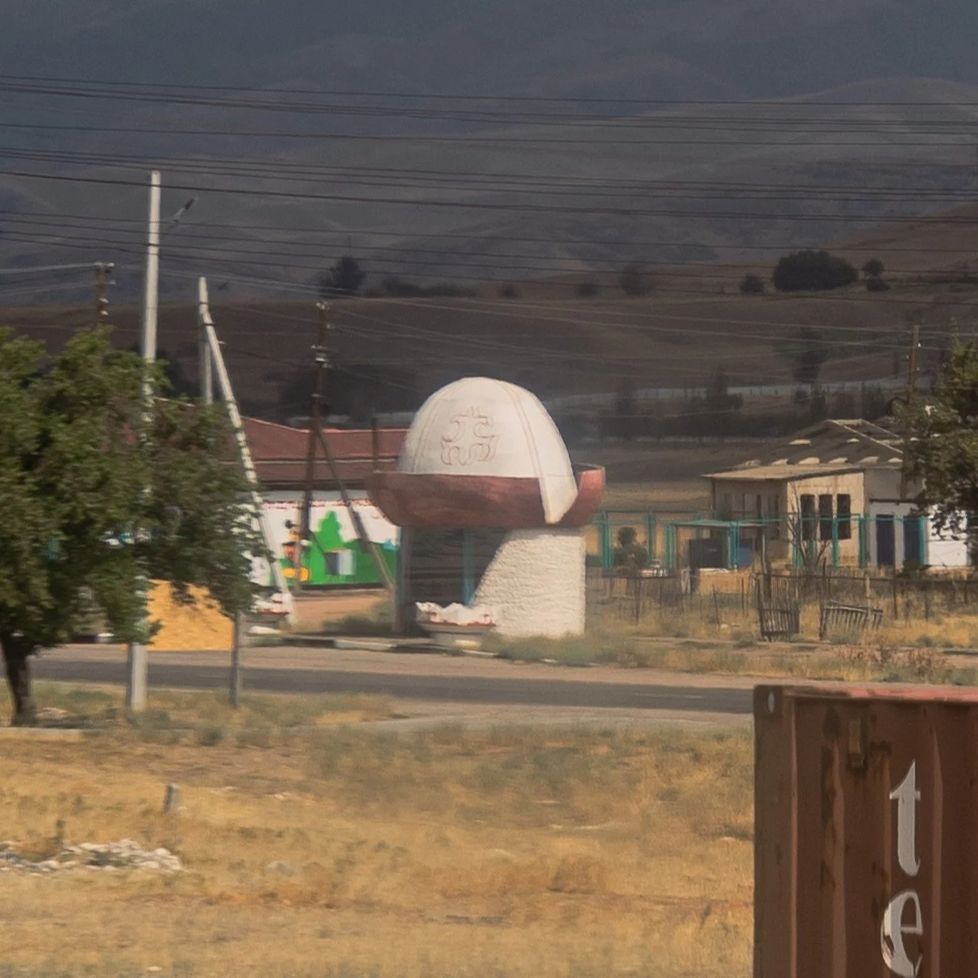 A bus stop built to look like a Kalpak. A traditional Kyrgyz hat worn by men.