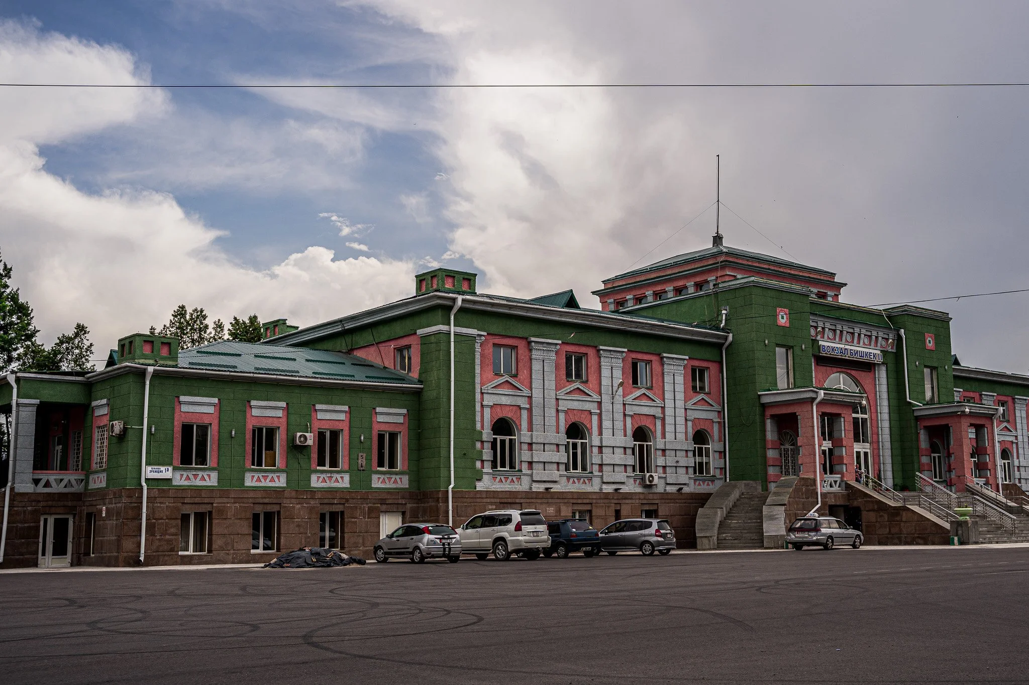 This large factory is the tallest structure in the city. We thought maybe it would be possible to explore inside, however, the local communication providers use it as a cell tower. In Soviet times, the factory was most likely used to process fish and other commodities before being placed in a rail car and sent to Bishkek.