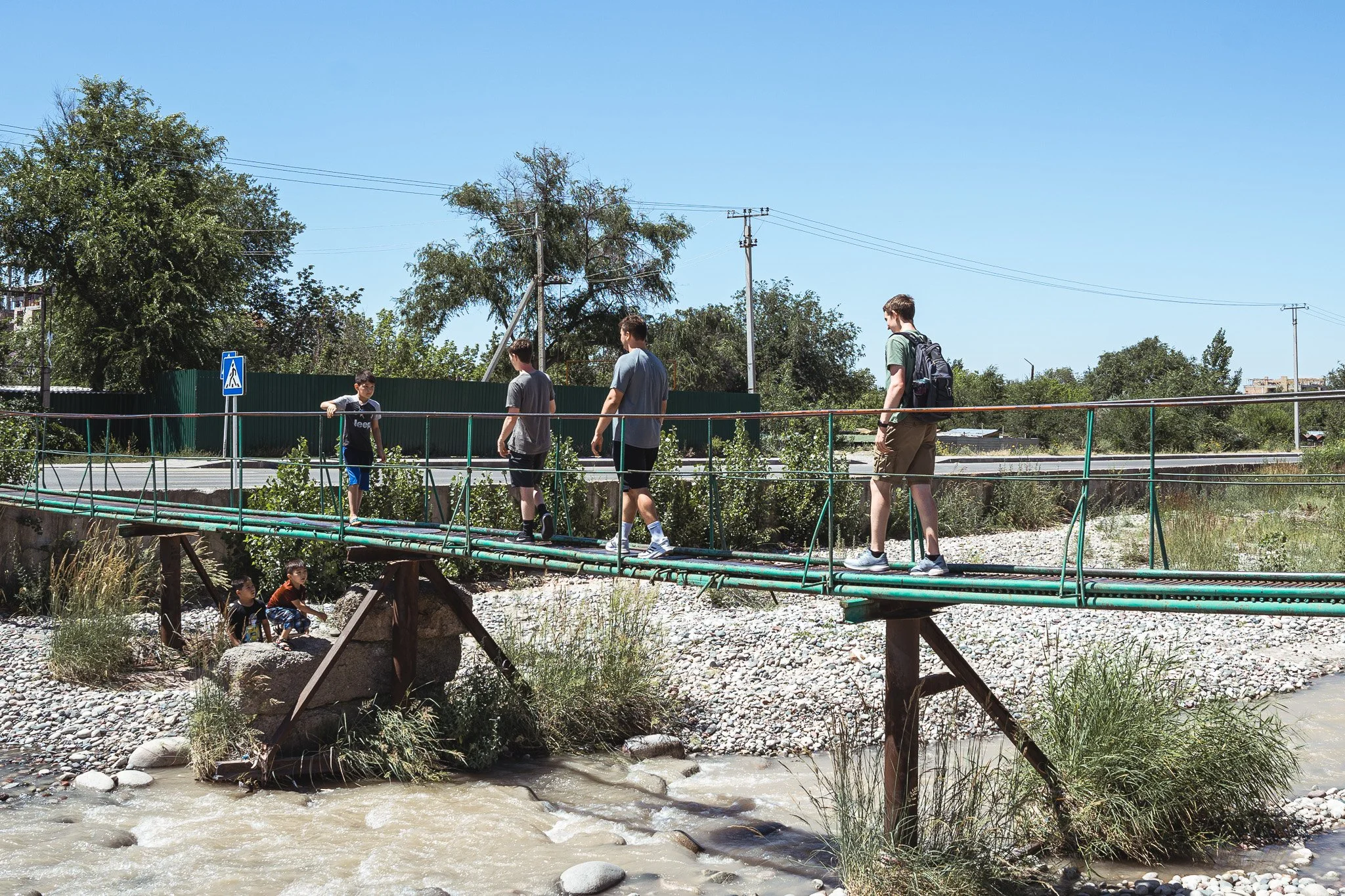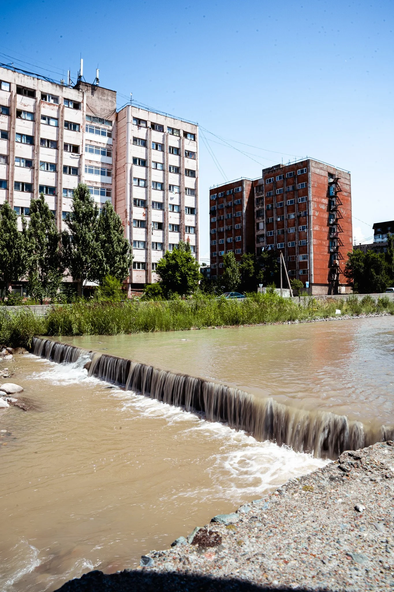 Most of the residential buildings in this neighborhood might have been built in the 70’s. It is known as the 10th Micro district which consists of a few rows of five to ten story apartments. There is also a pedagogy facility in the center of the district. The eighteen story space ship building sits in the corner of the district alongside the Ala-Archa river.